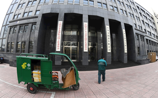 邮政快递小哥来到共青团中央等部门投送邮件。李旭昌 李巍 摄