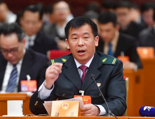 3月9日上午,江苏代表团全团审议全国人大常委会工作报告,全国人大代表、江苏省泗洪县归仁邮政支局局长殷勇在会上发言。