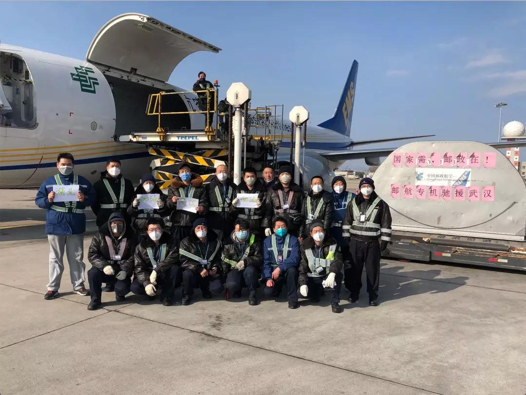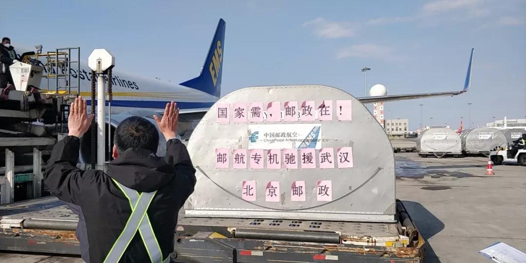 2月3日14时14分,中国邮航“打赢疫情防控阻击战”第6班专机从北京首都机场起飞,于16时05分飞抵武汉天河机场,所载物资为防护服、口罩、医用手套等,重量是9144千克。其中包括15.8万个医用外科口罩、32.5万双医用外科手套共约3300千克的境外捐赠物资。
