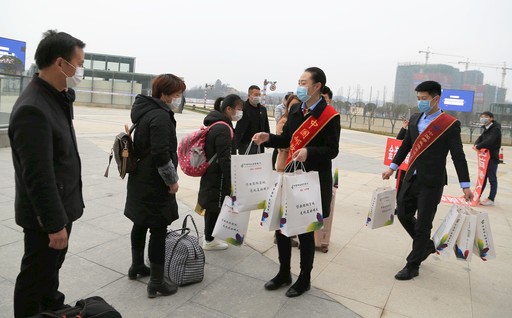 2月20日,“毕海同心、双战双赢”贵州毕节至浙江海宁务工人员返程专列欢送仪式在毕节市举行。邮储银行毕节市分行、毕节市人力资源和社会保障局、毕节市邮政分公司联手为每一位务工人员准备了一份含口罩、方便面、八宝粥等物资的防疫“邮爱礼包”,共计600余个。