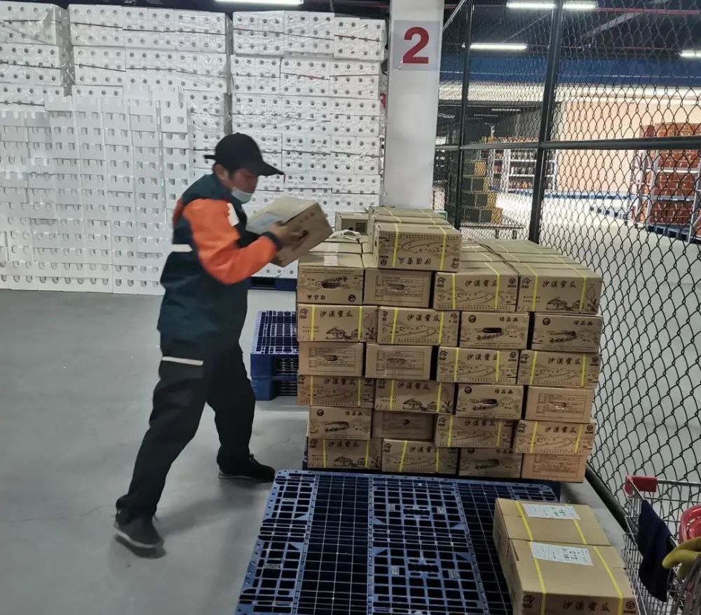 4月15日,一辆邮车驶入巴彦淖尔市磴口县物流中心,车一停下,驻派基地的两名负责装箱、贴单的邮政员工立即和邮车司机配合,将早已打包好的“早黄蜜”瓜搬上邮车,不一会儿功夫,就将当天发运的270件安排妥当。截至目前,邮政共发运“早黄蜜”近500件3000余斤。