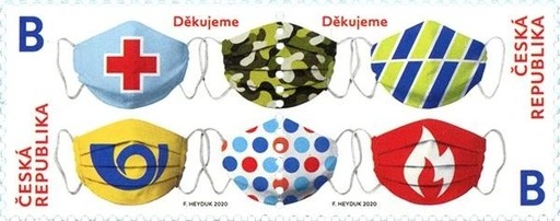 5月4日,马恩岛邮政发行一套8枚《共渡时艰》邮票,鼓励民众以团结、关爱和正能量抗击全球范围内的新冠肺炎疫情。8枚邮票的主题分别为:爱心、信仰、关爱、同情、感恩话语、社区、工作和科学技术;阿联酋邮政于5月10日发行“致敬抗击新型冠状肺炎英雄”小型张;乌拉圭邮政于5月13日发行《抗击新型冠状肺炎》邮票;乌克兰邮政于5月29日发行“抗击新型冠状肺炎”邮票;6月24日,捷克邮政发行一套2枚《口罩》普通邮票,向抗疫一线的工作人员表示感谢。