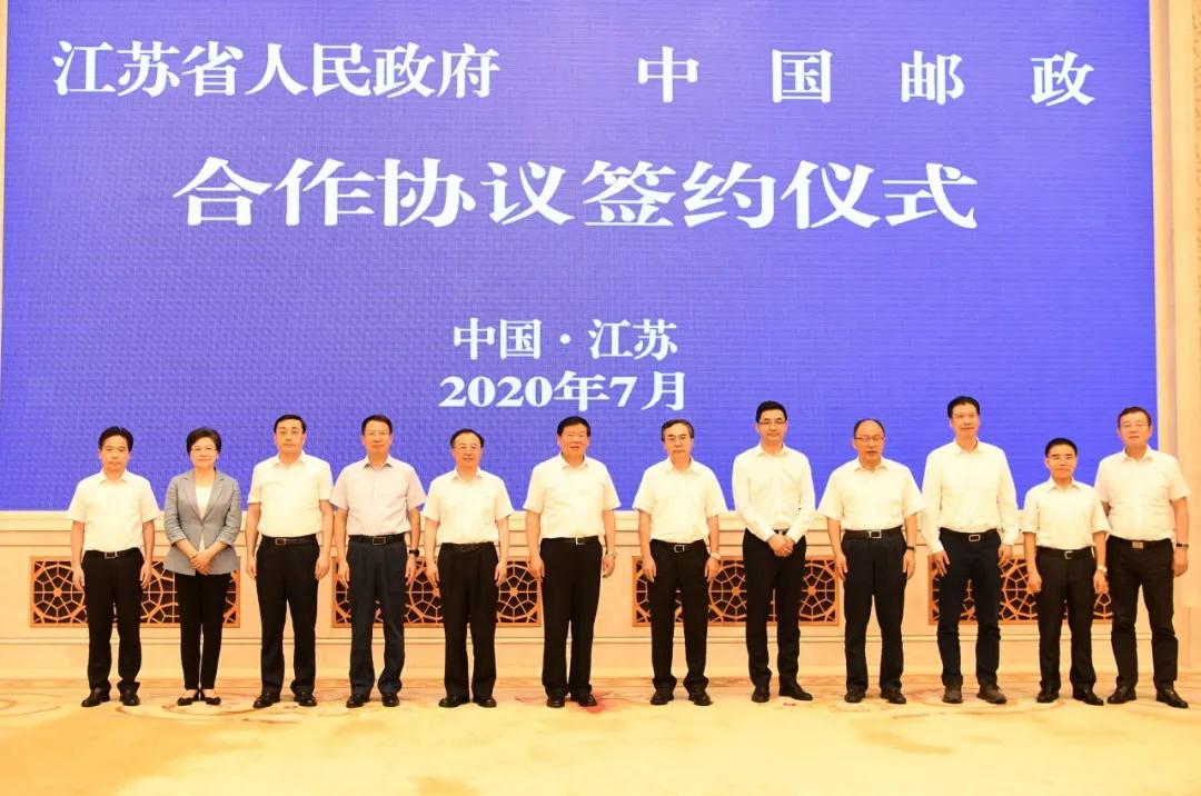 7月30日,中国邮政集团有限公司与江苏省人民政府在南京签署战略合作协议。江苏省委书记娄勤俭、省长吴政隆会见中国邮政集团有限公司党组书记、董事长刘爱力,党组副书记、总经理张金良一行,并共同出席签约仪式。江苏省委常委、省委秘书长郭元强,副省长费高云,南京市市长韩立明,省政府秘书长陈建刚,集团公司副总经理康宁参加有关活动。