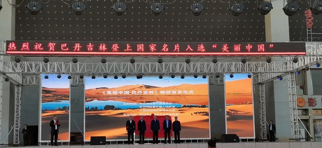 当天晚上,由阿拉善右旗旗委宣传部主办,旗文化旅游广电局和阿右旗邮政分公司承办的“美丽中国·巴丹吉林”普通邮票首发暨庆祝中国共产党成立100周年纪念邮折发行活动成功举办。此次巴丹吉林沙漠题材入选“美丽中国”邮票,使得阿拉善右旗荣登“国家名片”,也是内蒙古首枚美丽中国系列邮票,成为阿拉善右旗又一张新的名片,对促进阿右旗宣传思想、文化旅游事业发展,提高“中国最美沙漠”知名度和美誉度必将产生积极的推动作用。