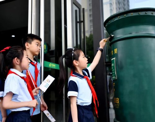 在明信片书写体验环节,孩子们在明信片上写下对祖国的祝福、对党的热爱、对中国梦的憧憬,并加盖个性化纪念戳,将明信片投寄给老师、朋友或家人,铭记这份珍贵的红色情怀。