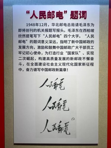 特别是在新民主主义革命时期,毛泽东题词“人民邮电”,周恩来题词“传邮万里 国脉所系”等珍贵文物,充分反映了邮政在社会发展中的重要地位和作用,指出了邮政事业为人民服务的性质宗旨,明确了邮政人的初心使命。