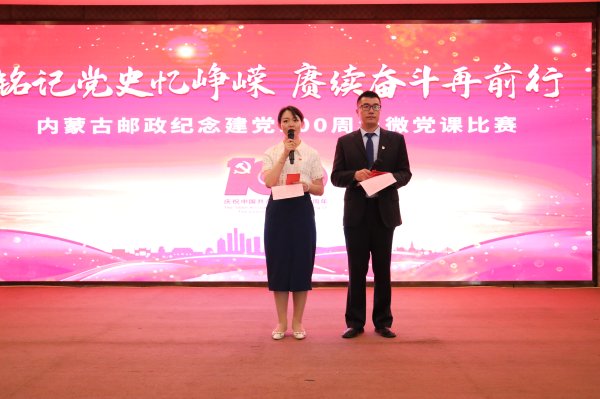 为庆祝中国共产党成立100周年,深入贯彻落实习近平总书记在庆祝中国共产党成立100周年大会上的重要讲话精神,扎实推进党史学习教育各项工作,从党的百年伟大奋斗历程中汲取继续前进的智慧和力量,7月7日下午,内蒙古邮政分公司举办了“铭记党史忆峥嵘,赓续奋斗再前行”微党课比赛。区分公司在家的党委班子成员,区分公司各部门、各直属单位、区寄递事业部、呼和浩特市分公司党员干部及员工代表近200人观看了比赛。