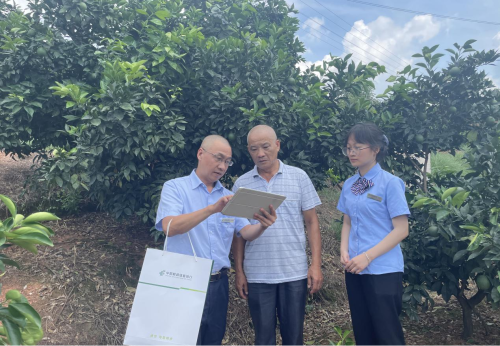 傅干生是信丰县嘉定镇的脐橙种植专业大户,从2013年开始种植脐橙,到2020年脐橙种植面积已达400余亩。勤劳踏实、满怀憧憬的他怎么也没有想到要经历如此坎坷,由于“柑橘绝症”黄龙病的肆虐而来,脐橙种植基地将近300余亩果树需要砍伐重新种植,损失惨重。由于前期已投入大量资金,购买新苗资金没有着落,他急得东奔西跑去银行申请贷款,可当时的困境对于任何一家银行来说要发放贷款都非易事,贷款申请的不顺利对他而言更是雪上加霜。一时间,他仿佛被压了一块巨石般无精打采。