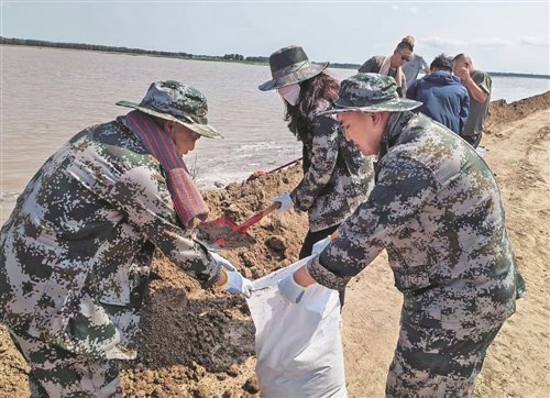 吉林邮政按照地方政府指令,第一时间组织职工奔赴防汛一线封装沙袋、固坝筑堤,守护人民群众生命财产安全。