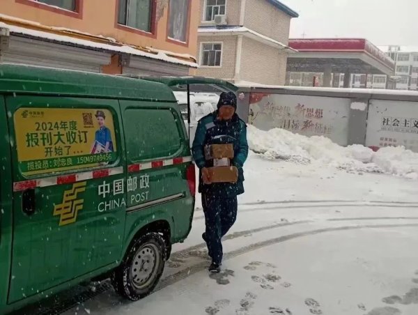 通辽市分公司制定了应急预案,积极开展供电保障工作,做好员工休息室的供暖保障和食堂及时就餐工作,并为一线人员提供方便面、火腿肠、牛奶等保障食品。大雪阻挡不了前行的脚步,投递员克服天气原因力争第一时间把快递送到用户手中。