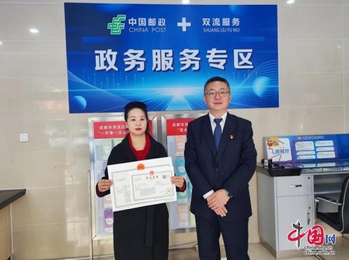 11月28日,双流区行政审批局与中国邮政集团有限公司成都市双流区分公司战略合作协议签订仪式举行。仪式上,双方合作设立的首个“政务服务专区”窗口在长顺路网点正式开始运行,并办出第一份企业营业执照。