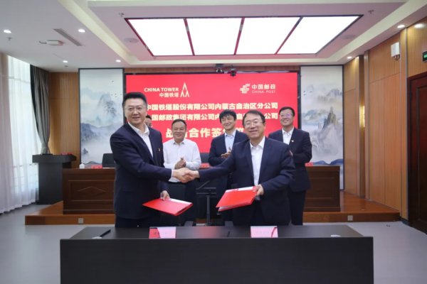 5月7日下午,内蒙古邮政分公司与内蒙古铁塔分公司签订战略合作协议,内蒙古邮政分公司总经理蔡明辉、内蒙古铁塔分公司总经理陶冶讲话;内蒙古邮政分公司副总经理宝勒德主持会议;内蒙古邮政分公司副总经理潘峰与内蒙古铁塔分公司副总经理钱占国代表双方签署战略合作协议。