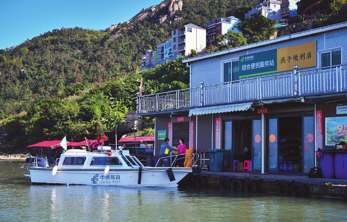 石进全将邮件送达海上邮政综合便民服务站。  □曾祥文 摄