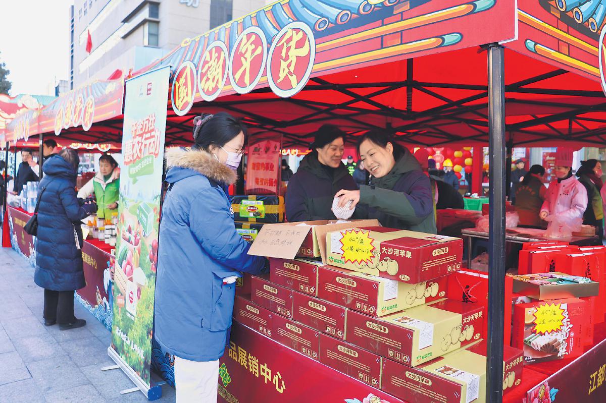 江都区邮政分公司党委立足惠农助农促消费,聚焦“年货、年礼、年味、年趣”主题,精心挑选了特色产品。渌洋湖松花蛋、扬州富春包子、大沙河苹果、阜宁大糕等优质农特产品礼盒成为市民采购的热点,展现扬州文化的明信片、邮折、邮票等精美文创产品也吸引众多市民驻足。邮政员工还积极宣传邮乐网“千企万社惠农行动”,市民纷纷扫码体验,享受活动优惠。