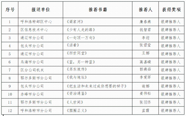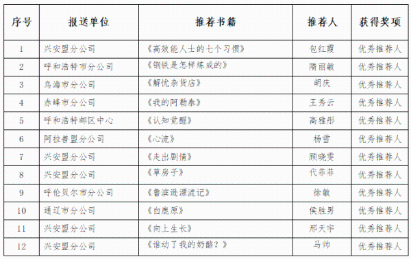 “书香邮韵”好书推荐获奖名单