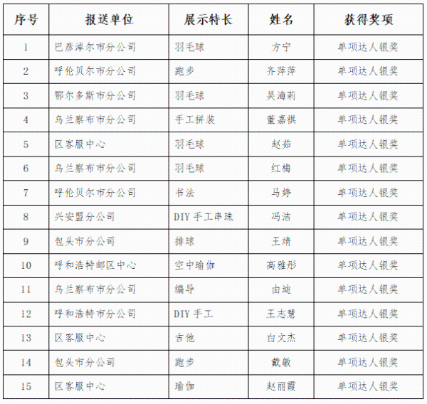 “多彩巾帼”特长展示获奖名单
